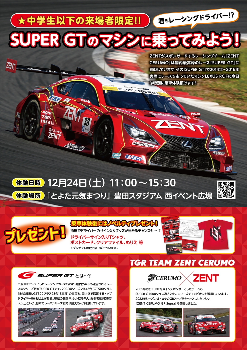 新着情報NEWS ホーム 新着情報 とよた元気まつりにSGT車両を展示し、お子さまの乗車体験企画を実施 CSR・サステナビリティ2022年12月24日 とよた元気まつりにSGT車両を展示し、お子さまの乗車体験企画を実施 12月24日(土)に豊田スタジアムで開催されました「第2回とよた元気まつり」にて、SGT車両「RCF」を展示し、お子さまの乗車体験企画を実施しました。 SGT車両を初めて見る方やZENTファンの方など、計116組の方々が体験、および写真撮影をされました。
