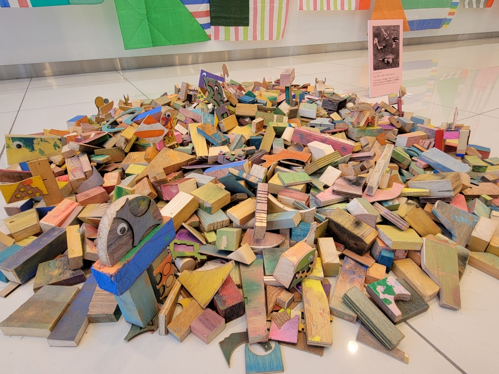日常のアイテムであるレジャーシートを組み合わせ新たな視点を与える作品展